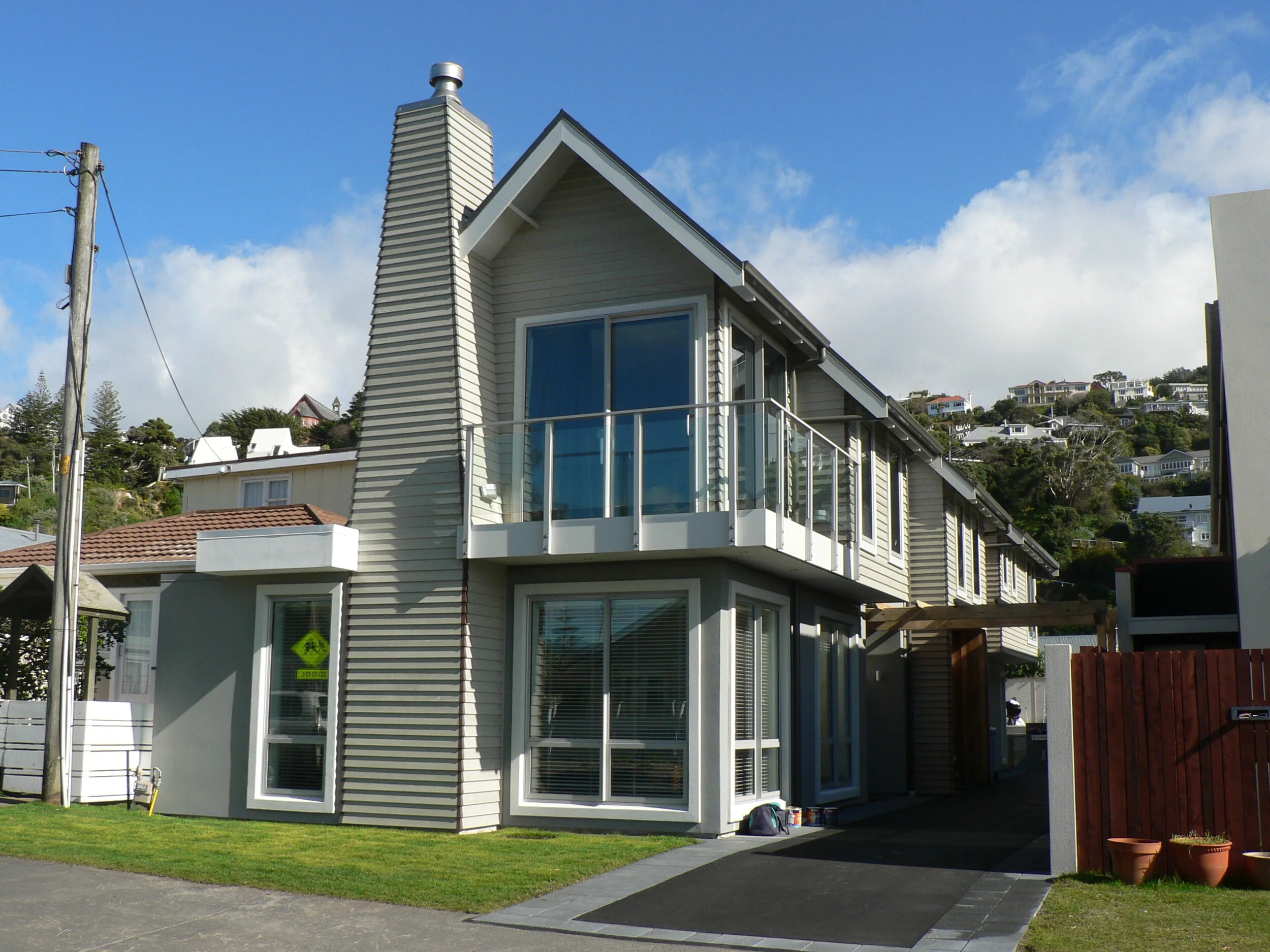 Situated in Seatoun on a long narrow site, this project implemented a 4 bedroom, 3.5 bathroom with a striking material palette and views from the front of the house straight to the harbour.
